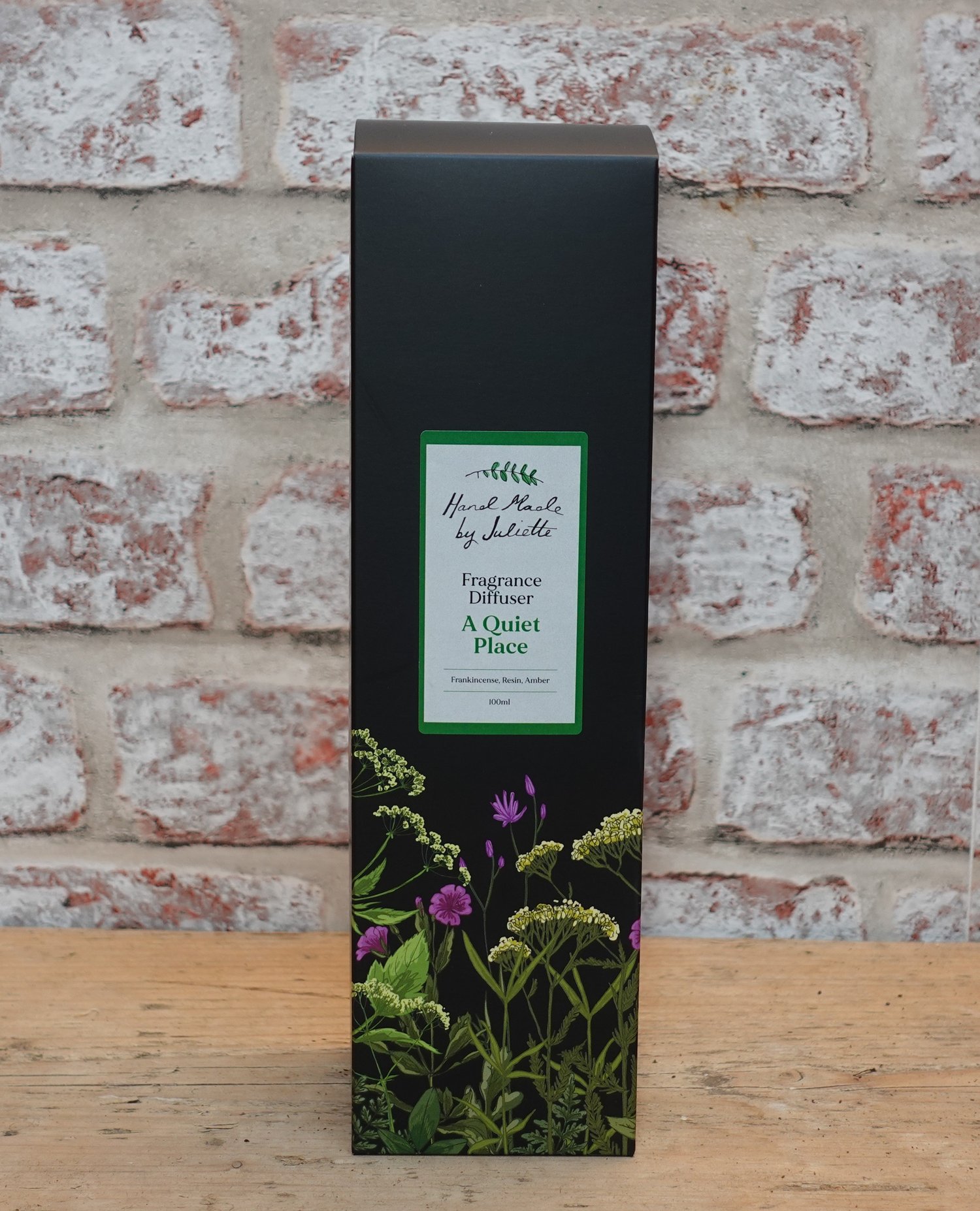 I had been helping out Juliette with corrections and additions to previously designed packaging for her natural skincare and candle range when she asked if I could give her packaging a fresh new look. We settled on smart black card packaging with a botanical illustration. I tweaked the hand drawn logo to better fit, and chose a new font and colour to carry through the different variants. The new style packaging has been introduced to the candles and diffusers and we are currently working on matching designs for the skincare range.