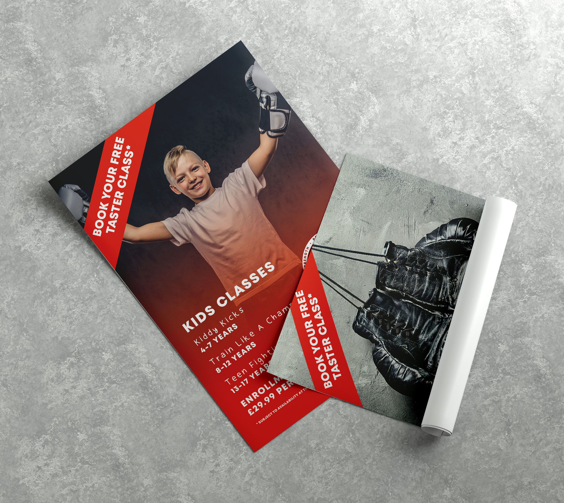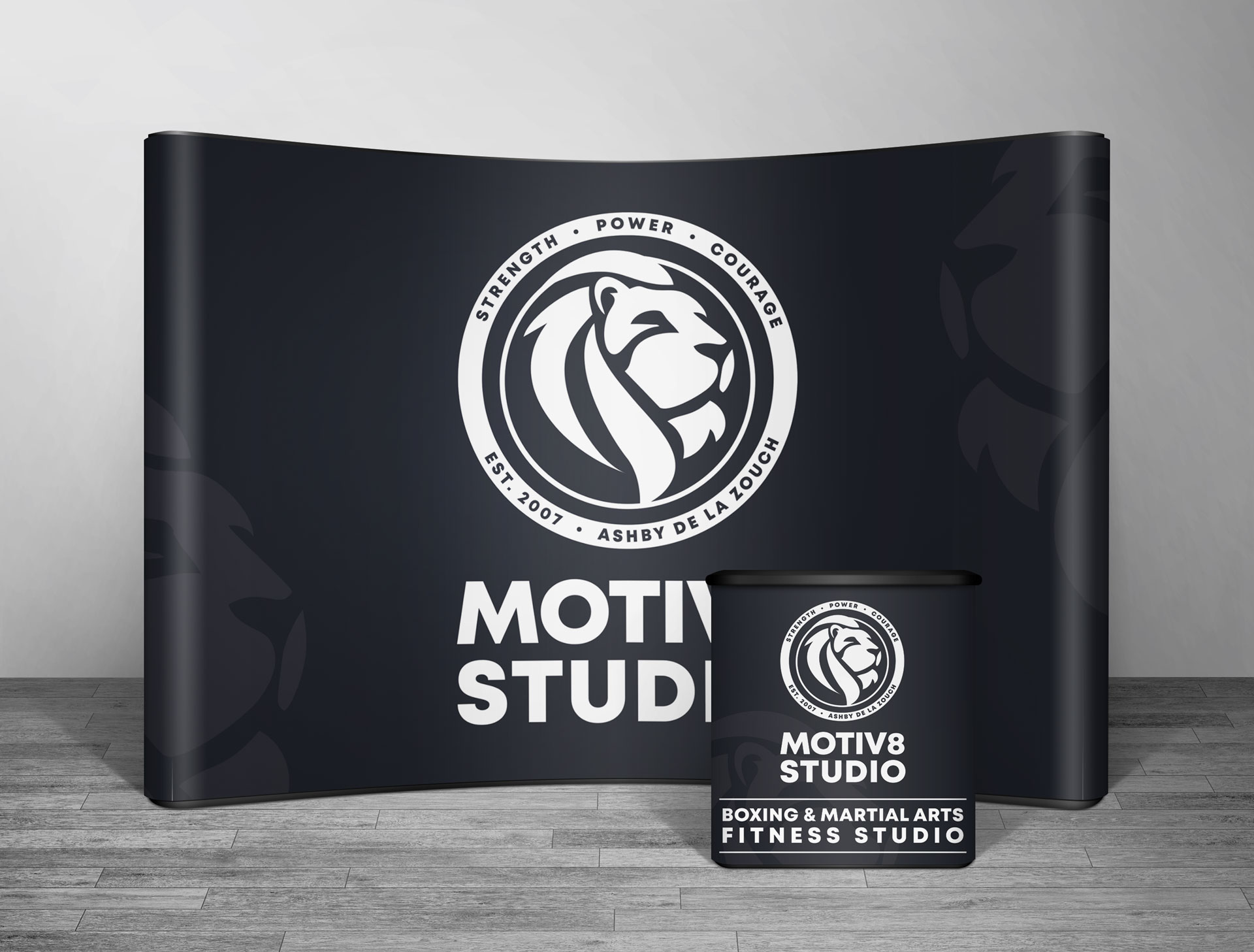 I was tasked with creating a new brand identity for a local gym, including a sub-brand for their ‘Kids Academy’ offering. As a part of the rebranding exercise I also created artwork for new signage, marketing material (flyers, posters and a pull-up banner), an exhibition stand, graphics for their new website (both static and animated) and social media graphics. To build on their strong growth and as part of a development plan and building refurbishments, the gym were keen to rebrand with a sleek, professional new look. I worked with them to create a strong, clean, bold aesthetic and a sharp new lion motif. I produced a pack of brand assets including logo sets, fonts, imagery and colour palettes for both the Motiv8 Studio Gym and their Kids Academy. I also produced artwork for various building signage and marketing materials that could then be used as templates for future flyers/posters.
